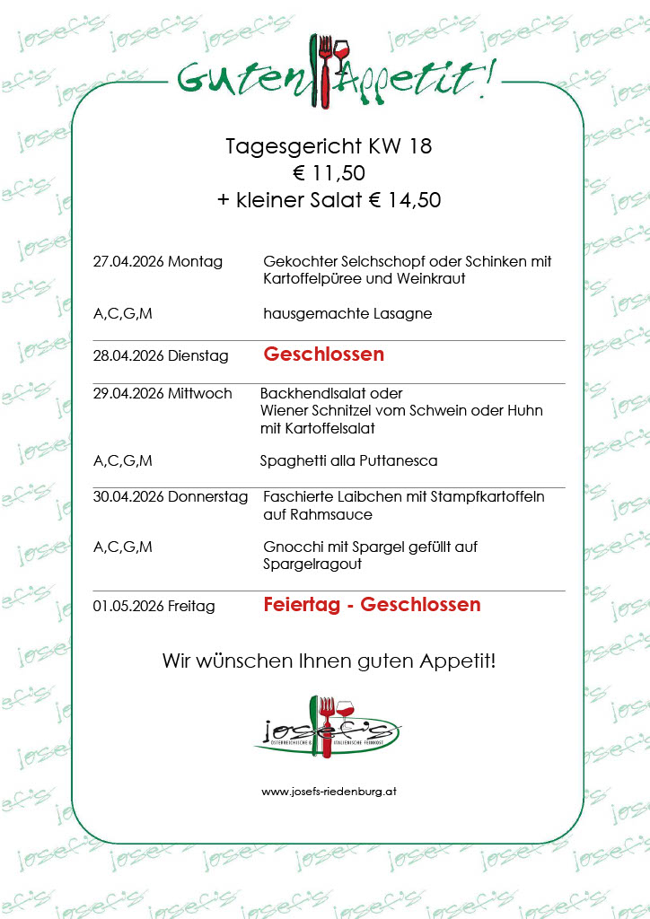 —— JOSEF´S GRÜSST SEINE GÄSTE!
